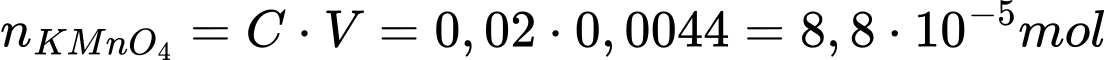 n KMnO4 = 0,20 × 0,0125 = 0,0025 mol