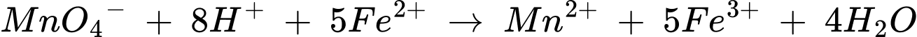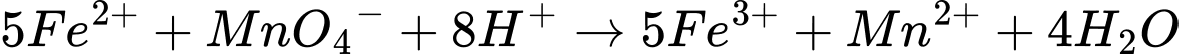 5Fe2+ + MnO4−→ 5Fe3+ + Mn2+