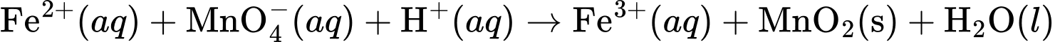 8H+(aq) + 5Fe2+(aq) + MnO4–(aq) → Mn2+(aq) + 5Fe3+(aq) + 4H2O(l)