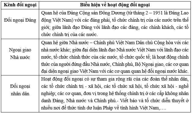 Câu 12 [875755]: Cho bảng thông tin về các kênh đối ngoại của Việt Nam (1945 – 1975):