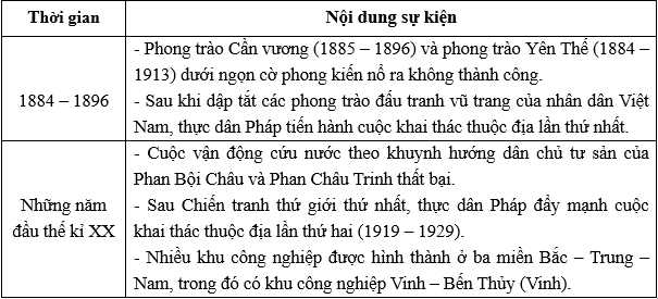 Câu 1 [881861]: Nội dung nào sau đây không đúng bối cảnh nước Việt Nam (cuối thế kỉ XIX – đầu năm 1930)?