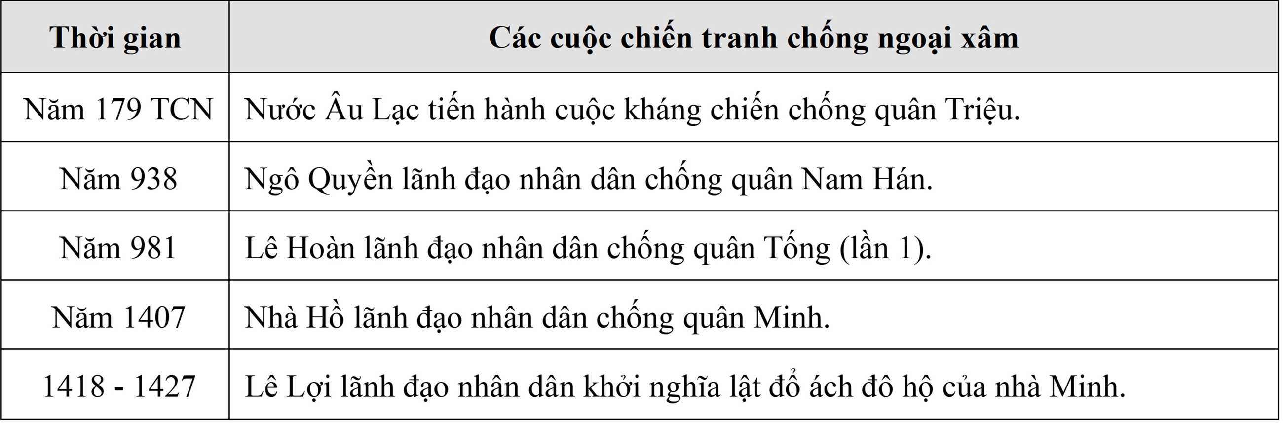 Câu 4 [882624]: Chiến tranh bảo vệ Tổ quốc trong lịch sử Việt Nam (trước Cách mạng tháng Tám năm 1945) có vai trò quyết định đối với