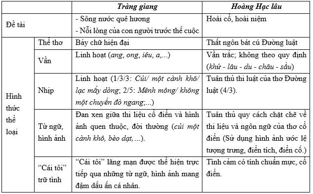 b. Những điểm khác biệt về đề tài và hình thức thể loại giữa hai bài thơ