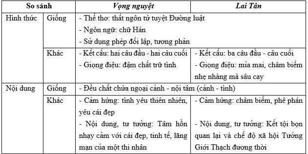 So sánh bài thơ Lai Tân và bài thơ Vọng nguyệt