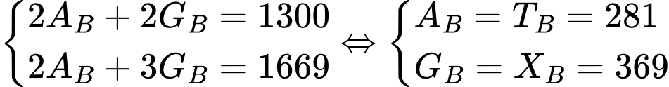 Gene Bb nguyên phân bình thường hai lần liên tiếp, môi trường nội bào đã cung cấp 1689 nucleotide loại T và 2211 Nu C.