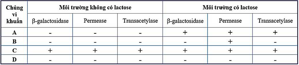 A. Sai. Ở chủng C, enzyme phân giải được tổng hợp khi môi trường không có lactose và môi trường có lactose.