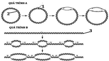 - Sinh vật nhân sơ: DNA có cấu trúc vòng, quá trình nhân đôi bắt đầu từ một điểm khởi đầu duy nhất.
