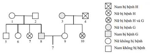 Quy ước gene: H không bị bênh H; h– bị bệnh h; G- không bị bệnh G; g- bị bệnh G