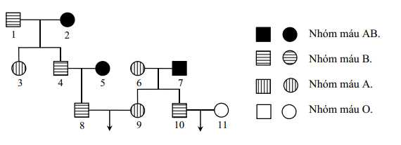 Người số 10 có máu B, là con của người số 6 (máu A) và người số 7 (máu AB). → Người số 10 có kiểu gene IBIO và người số 6 có kiểu gene IAIO.