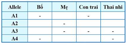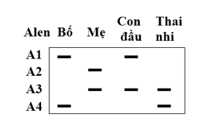 Thai nhi: có 2 vạch A3, A4 → Kiểu gene A3A4 (nhận A3 từ bố, A4 từ mẹ)