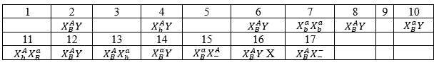 Người vợ số 15 luôn nhận được NST XaB từ bố nên có kiểu gene là XaBX--.