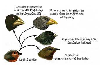 B. Năm loài chim sẻ này được hình thành từ một loài tổ tiên nào đó. → 4 loài chim này hình thành từ loài chim sẻ tổ tiên❌