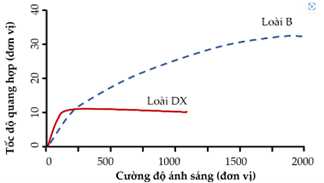 a) Đúng. Ở điều kiện ánh sáng yếu loài DX quang hợp tốt hơn loài B. ✅