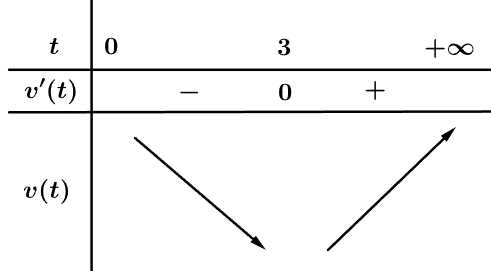 Nhìn vào bảng biến thiên ta thấy: Từ thời điểm bắt đầu chuyển động đến thời điểm