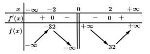 có [[20528388]] điểm cực tiểu và [[20528389]] điểm cực đại.Tổng các giá trị cực đại của hàm số