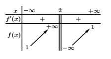 Quan sát bảng biến thiên của hàm số, ta thấy tại điểm hàm số không xác định (hay có kí hiệu dấu hai gạch thẳng đứng song song) là