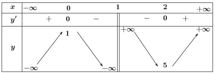 Ta có bảng biến thiên hàm số: