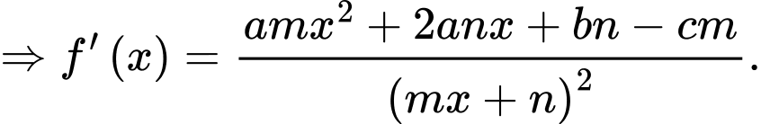 Công thức tính đạo hàm nhanh của hàm phân thức