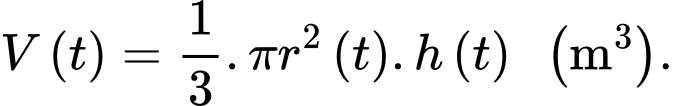 Gợi ý: Tốc độ bơm nước (tốc độ thay đổi thể tích) là đạo hàm của hàm thể tích. Tốc độ dâng lên của mực nước là đạo hàm của hàm chiều cao. Khi đó, yêu cầu bài toán là tính tốc độ dâng lên