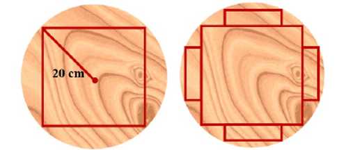 sao cho thanh dầm có diện tích mặt cắt ngang lớn nhất, tức là thanh dầm có mặt cắt ngang là hình vuông. Sau khi cắt thanh dầm đó, người ta lại cắt bốn tấm ván hình hộp chữ nhật từ bốn phần còn lại của khúc gỗ (tham khảo hình vẽ dưới đây). Xác định diện tích mặt cắt ngang tối đa của mỗi tấm ván (theo đơn vị