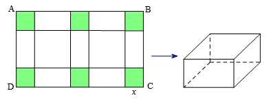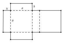 Câu 5 [1003416]: Một bạn đã cắt tấm bìa carton phẳng và cứng có kích thước như hình vẽ. Sau đó bạn ấy gấp theo đường nét đứt thành một hình chữ nhật. Hình hộp có đáy là hình vuông cạnh