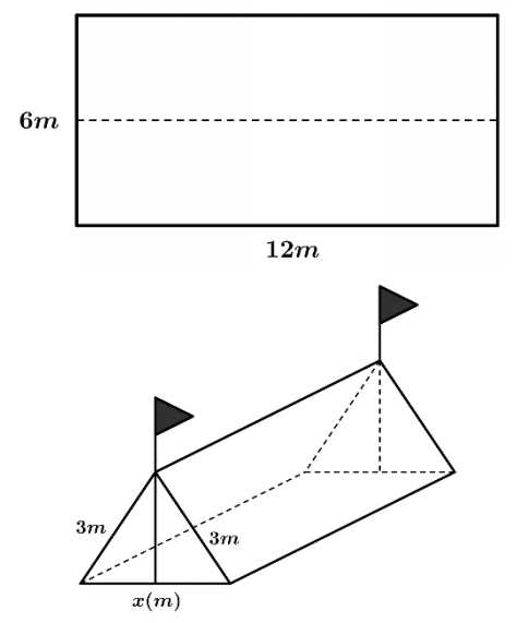 Câu 6 [382885]: Trong một đợt tổ chức cho học sinh tham gia dã ngoại ngoài trời. Để có thể có chỗ nghỉ ngơi trong quá trình tham quan dã ngoại, các bạn học sinh đã dựng trên mặt đất bằng phẳng 1 chiếc lều bằng bạt từ một tấm bạt hình chữ nhật có chiều dài là