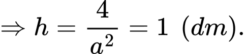 Câu 2 [5884]: Người ta muốn mạ vàng cho bề mặt phía ngoài của một cái hộp dạng hộp đứng không nắp (nắp trên), có đáy là một hình vuông. Tìm chiều cao của hộp để lượng vàng phải dùng để mạ là ít nhất, biết lớp mạ ở mọi nơi như nhau, giao giữa các mặt là không đáng kể và thể tích của hộp là
