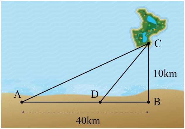 và giả thiết rằng bờ biển là một đường thẳng. Gọi