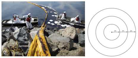 Bán kính của mảng dầu loang tăng theo thời gian, do vậy ta có thể coi bán kính r (m) của mảng dầu là một hàm số phụ thuộc theo thời gian t (h), tức là