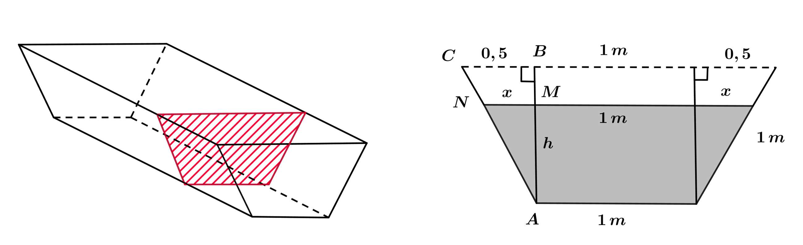 Thể tích của máng nước = Diện tích đáy (đáy là hình thang cân) x Chiều cao
