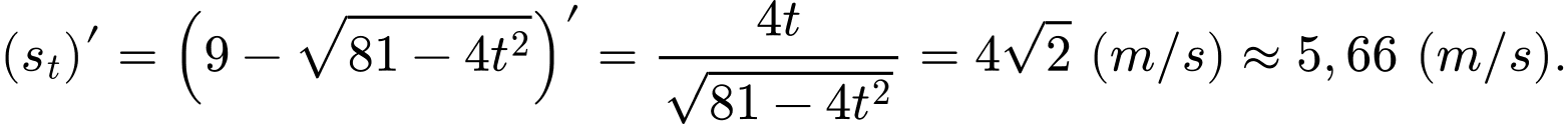 c) Theo ứng dụng của đạo hàm, ta có vận tốc bằng đạo hàm cấp một của quãng đường hay