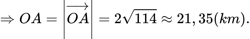 (đơn vị vận tốc là km/h) và dự kiến bay trong thời gian 10 giờ. Biết trạm kiểm soát không lưu đặt ở vị trí gốc toạ độ