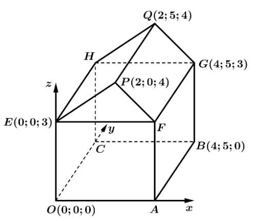 bên minh hoạ sơ đồ một ngôi nhà trong hệ trục toạ độ