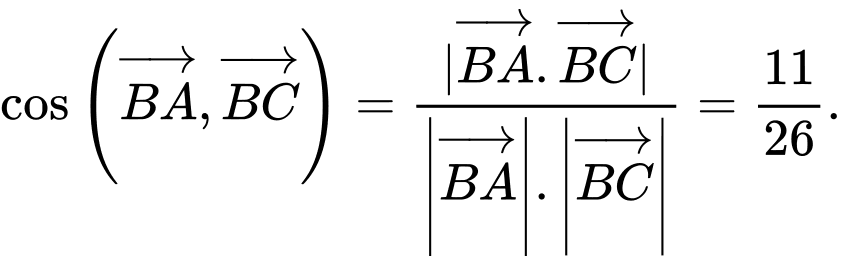 Bằng cách thiết lập hệ toạ độ như hình vẽ, hãy tính góc giữa hai vectơ