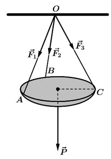 Câu 20 [863786]: Một chiếc đèn tròn được treo song song với mặt phẳng nằm ngang bởi ba sợi dây không dãn xuất phát từ điểm