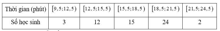 Câu 16 [390501]: Thời gian sử dụng điện thoại trong một ngày của 30 sinh viên được ghi lại ở bảng sau (đơn vị: phút).