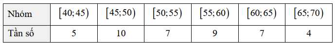 Bảng tần số ghép nhóm của mẫu số liệu trên như sau: