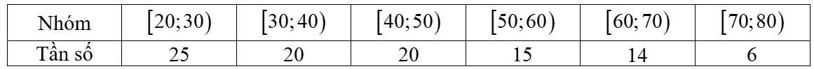Câu 18 [879701]: Cho mẫu số liệu ghép nhóm về độ tuổi của cư dân trong một khu phố.