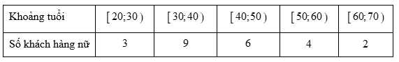 Câu 8 [1005837]: Số lượng khách hàng nữ mua hàng thời trang trong một ngày của một cửa hàng được thống kê trong bảng tần số ghép nhóm sau: