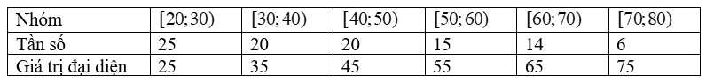 a)Chọn giá trị đại diện cho các nhóm số liệu, ta có bảng số liệu sau: