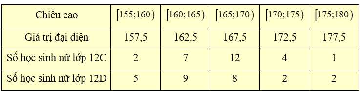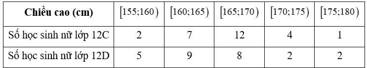 Câu 10 [860064]: Bạn Trang thống kê chiều cao (đơn vị: cm) của các bạn học sinh nữ lớp 12C và lớp 12D ở bảng sau: