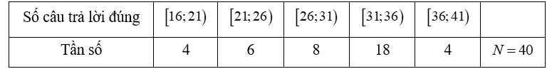 Câu 3 [1005838]: Sau khi điều tra về cân nặng của 40 học sinh trong lớp 12A ở một trường THPT X thu được kết quả trong mẫu ghép nhóm sau: