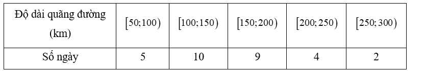 Câu 7 [861914]: Một bác tài xế thống kê lại độ dài quãng đường (đơn vị: km ) đã lái xe mỗi ngày trong một tháng ở bảng sau: