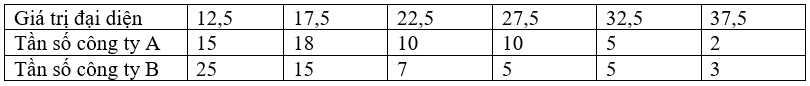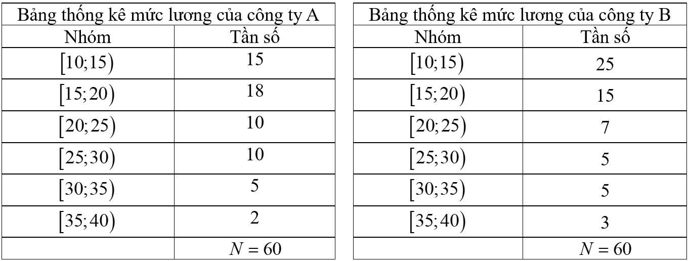 Câu 13 [879703]: Cho hai mẫu số liệu ghép nhóm thống kê mức lương của hai công ty