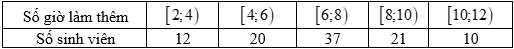 Câu 14 [864655]: Kết quả điều tra về số giờ làm thêm trong một tuần của sinh viên một trường đại học X được cho bởi bảng sau: