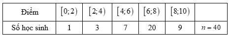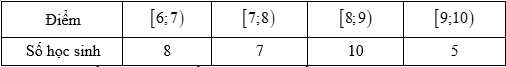 Câu 11 [864653]: Cho mẫu số liệu ghép nhóm về điểm môn Toán của một nhóm học sinh như sau: