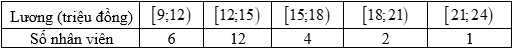 Câu 12 [864654]: Cho mẫu số liệu ghép nhóm về lương của nhân viên trong một công ty như sau: