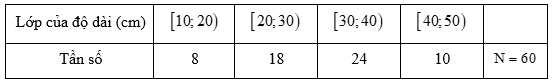 Câu 2 [547582]: Độ dài của 60 lá dương xỉ trưởng thành được cho bằng bảng phân bố tần số ghép lớp như sau: