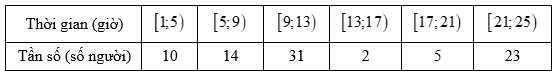 Câu 13 [331309]: Một câu lạc bộ thể dục thể thao đã ghi lại số giờ các thành viên của mình sử dụng cơ sở vật chất của câu lạc bộ để tập luyện trong một tháng như sau: