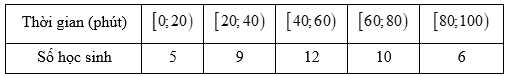 Câu 4 [547583]: Khảo sát thời gian tập thể dục trong ngày của một số học sinh khối 11 thu được mẫu số liệu ghép nhóm sau: